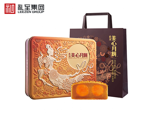 香港美心雙黃白蓮蓉中秋節(jié)月餅禮盒的雙黃白蓮蓉月餅濃滑細(xì)膩,巧配咸蛋黃,圓滿中秋味道.入口甘香軟滑,回味無窮.暖心設(shè)計的中秋禮盒,無論長輩或親朋好友均可感受到您濃濃的心意.
